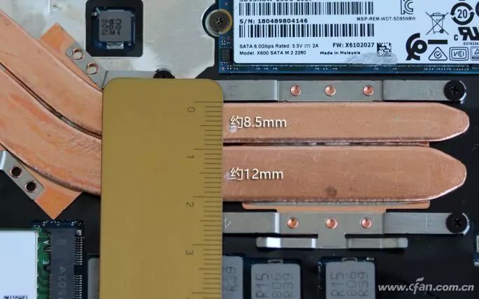 對輕薄本而言,熱管的數(shù)量并非越多越好。影響熱管導(dǎo)熱效率的關(guān)鍵還是橫截面積,采用1根12mm寬的熱管,其導(dǎo)熱效率與2根6mm寬的熱管相差無幾。