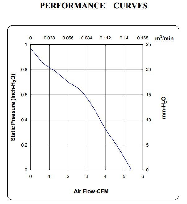 Size (mm) Air Flow (CFM) Size (mm) Air Flow (CFM) 60x60x25 17.5 ~ 18 120x120x38 70 ~ 124 70x70x25 28 ~ 29 171x151x51 80 ~ 239 80x80x25 40 ~ 41