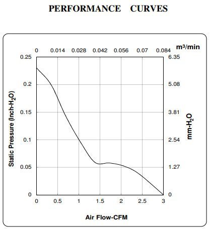 Size (mm) Air Flow (CFM) Size (mm) Air Flow (CFM) 17x17x8 0.7 ~ 0.9 60x60x15 10.8 ~ 21.0 20x20x8 1.3 ~ 1.6 60x60x20 16.0 ~ 30.5 20x20x10 1.5 ~ 1.9