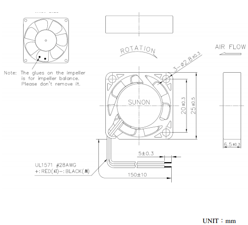 Size (mm) Air Flow (l/min) Size (mm) Air Flow (l/min) 10x10x3 3.43 15x15x3 8.75 12x12x3 5.95 17x17x3 16.27 Sunon直流鼓風機系列 (50x50x15 ~ 120x120x32mm)
