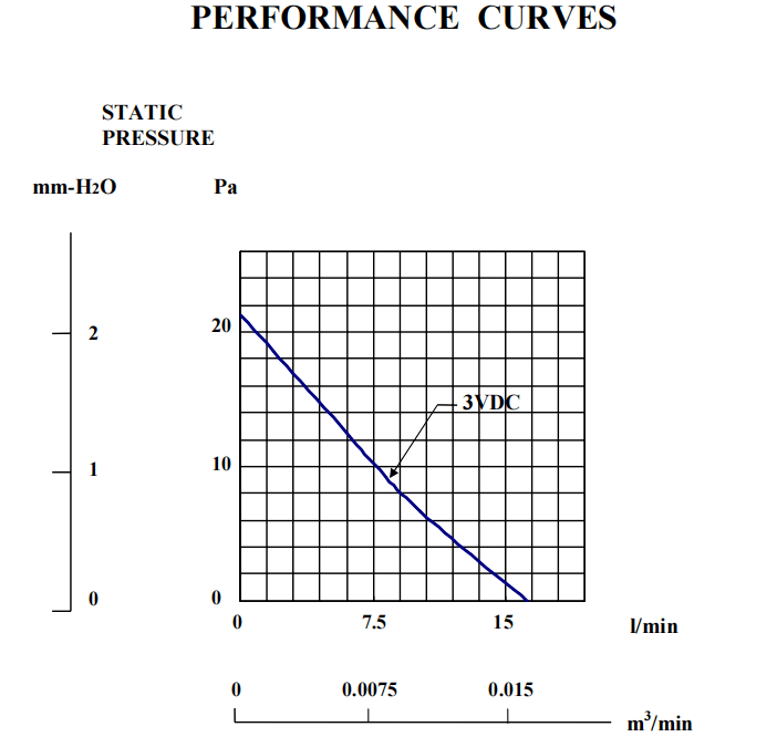 Size (mm) Air Flow (CFM) Size (mm) Air Flow (CFM) 17x17x8 0.7 ~ 0.9 60x60x15 10.8 ~ 21.0 20x20x8 1.3 ~ 1.6 60x60x20 16.0 ~ 30.5 20x20x10 1.5 ~ 1.9